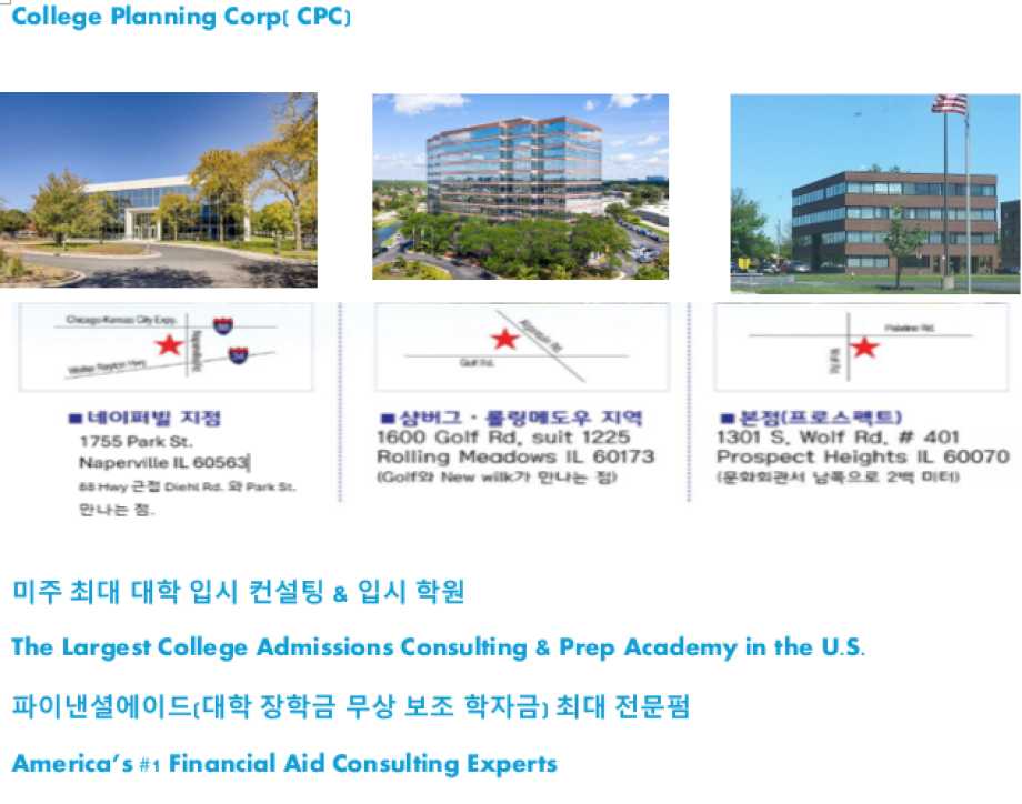 한국에서 미국 본사 칼리지 플래닝으로 전화 할 경우: 001-1-847-450-8001
