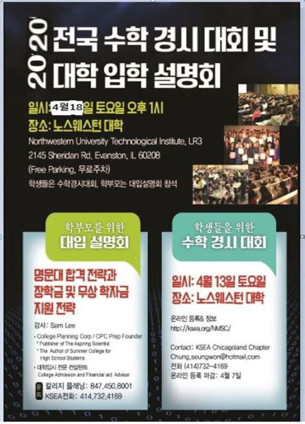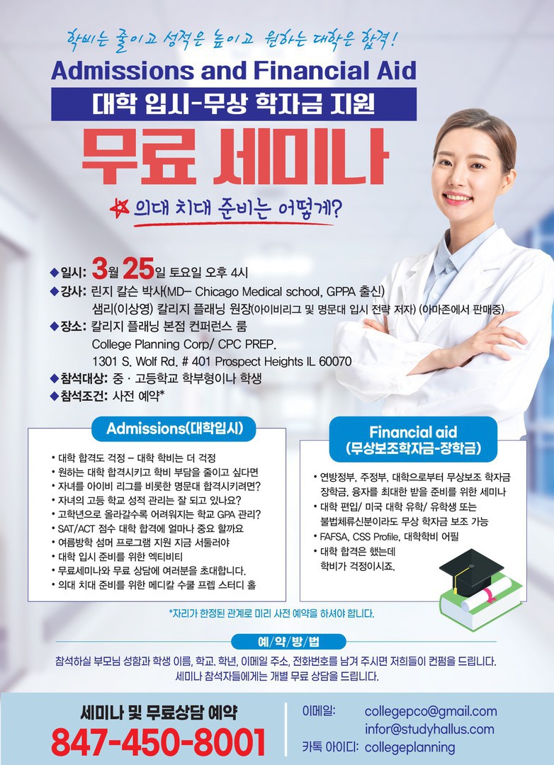 참석 예약및 문의: 847-450-8001 이메일: cpc@collegepco.com