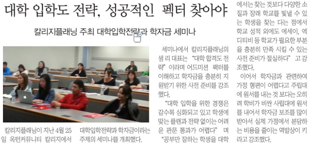 | 대학 입학 합격률 높이려면, 칼리지 플래닝 세미나 성황. |