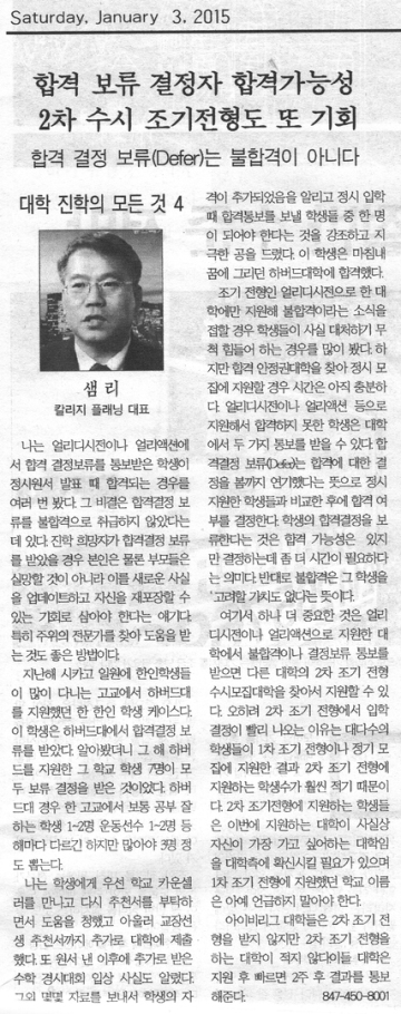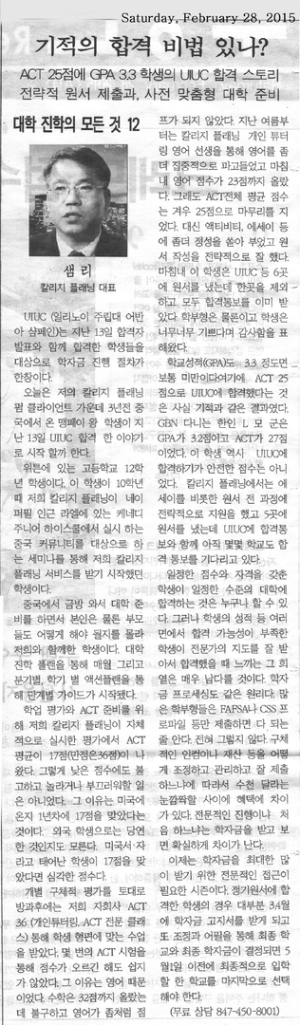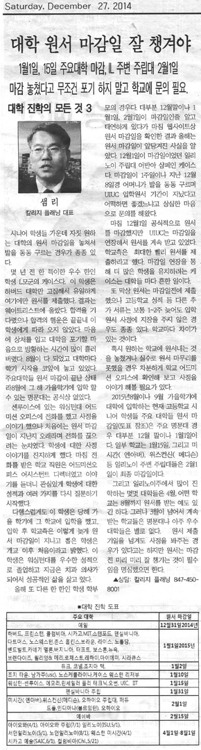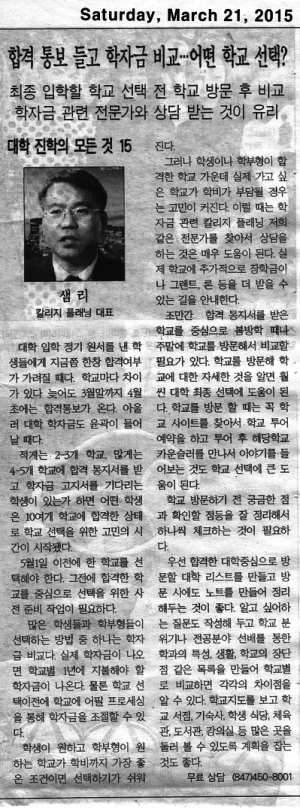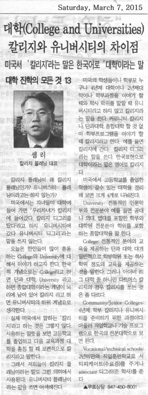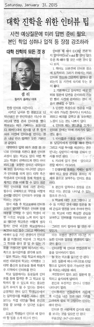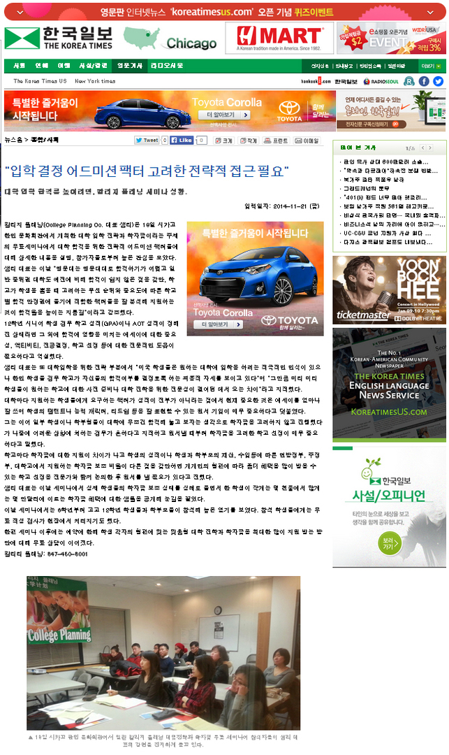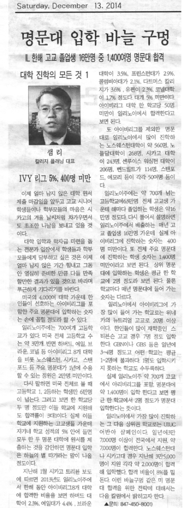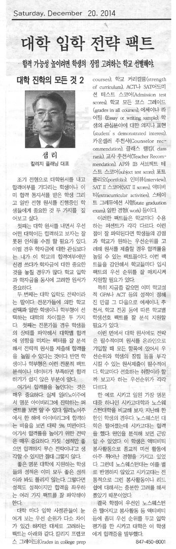 College Planning Co. www.collegepco.org 847-450-8001 (영자신문 번역본)