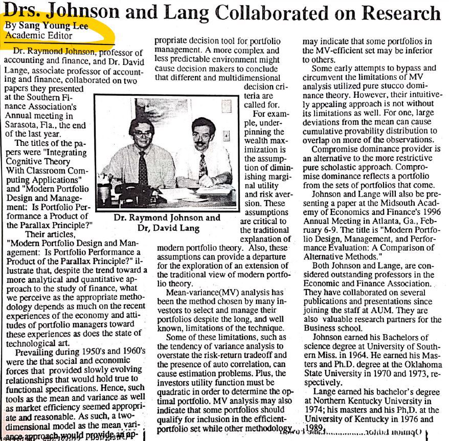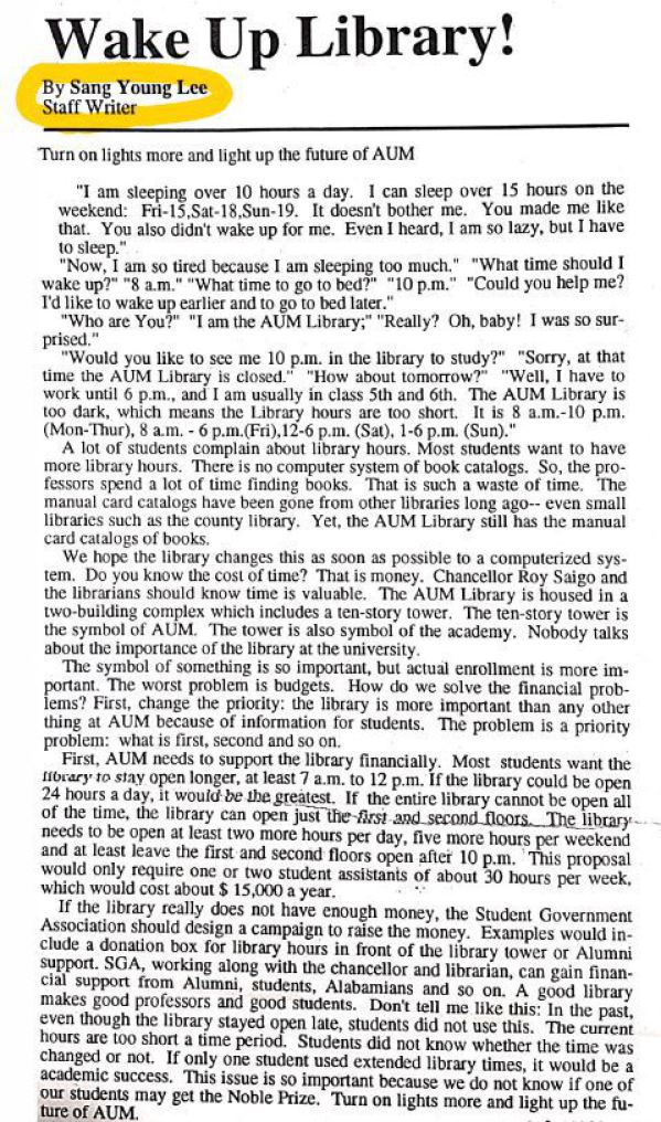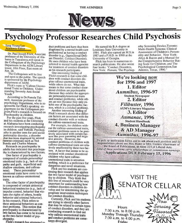 칼리지 플래닝 샘리 대표( 한국명 이상영(Sang young Lee)가 미국 대학 재학시절 대학 학교 신문사 staff writer(기자)를 거쳐 Academic Editor( 아카데미 에디터 )로서 활동할 당시 쓴 기사들이다. 그는 주로 대학교 교수들의 학문 연구나 리서치 관련 많은 취재와 아티클을 남겼다. 샘리 대표는 칼리지 플래닝을 설립하기전에는 중앙일보 편집국장을 역임했다.