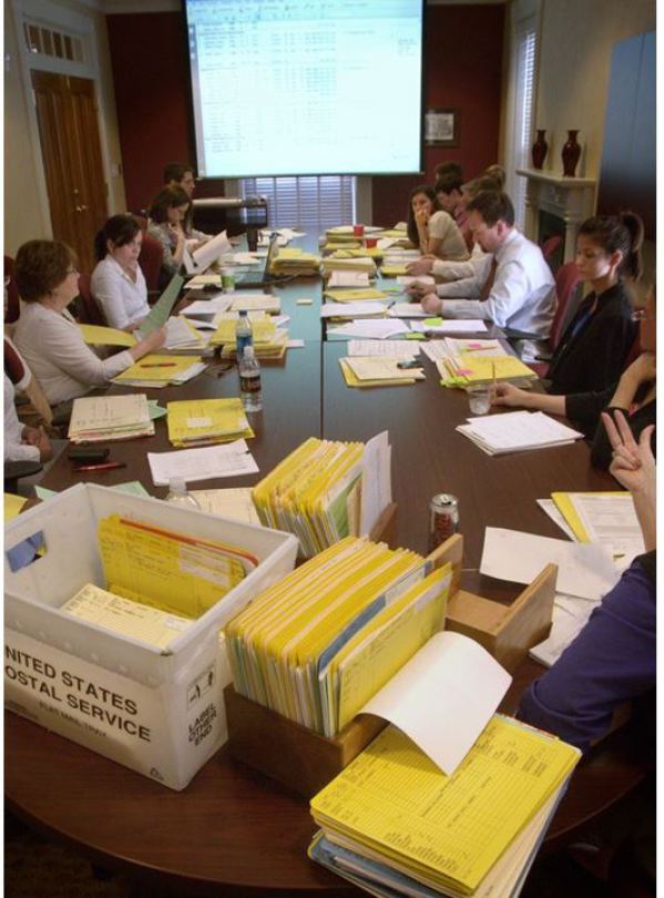 The Davidson College admission staff at work in 2015, before digital applications replaced paper ones.